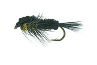 Montana Nymph Zwart/Geel Daiichi 1710 #10. De Montana nimf is een van de meest populaire vliegen voor Put&Take vissen.