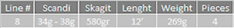 #8 12´ 34-38g / Skagit 580gr 269g 4